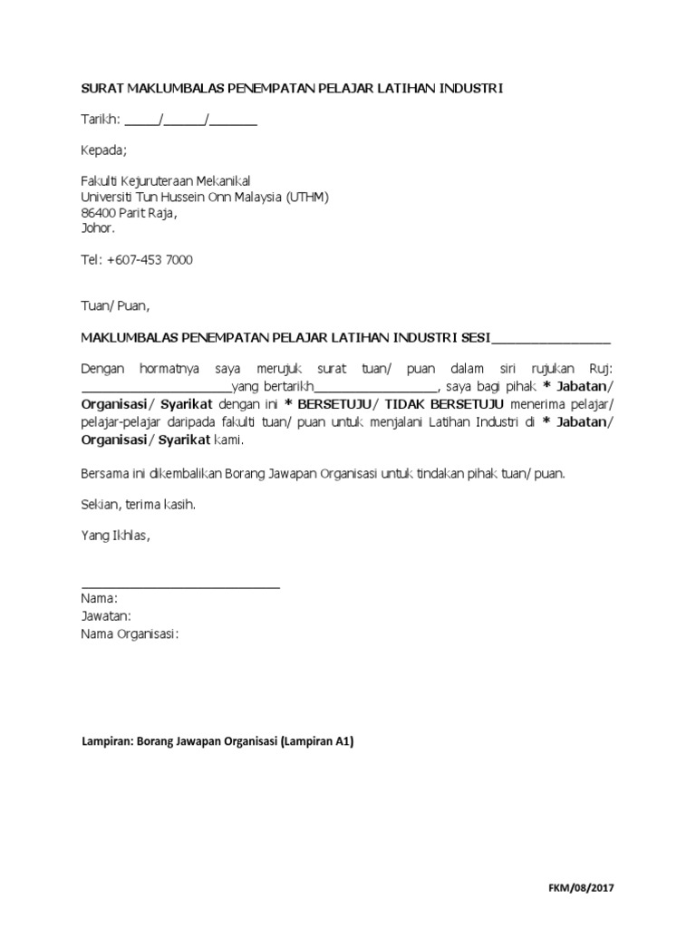 Contoh Surat Maklum Latihan Industri